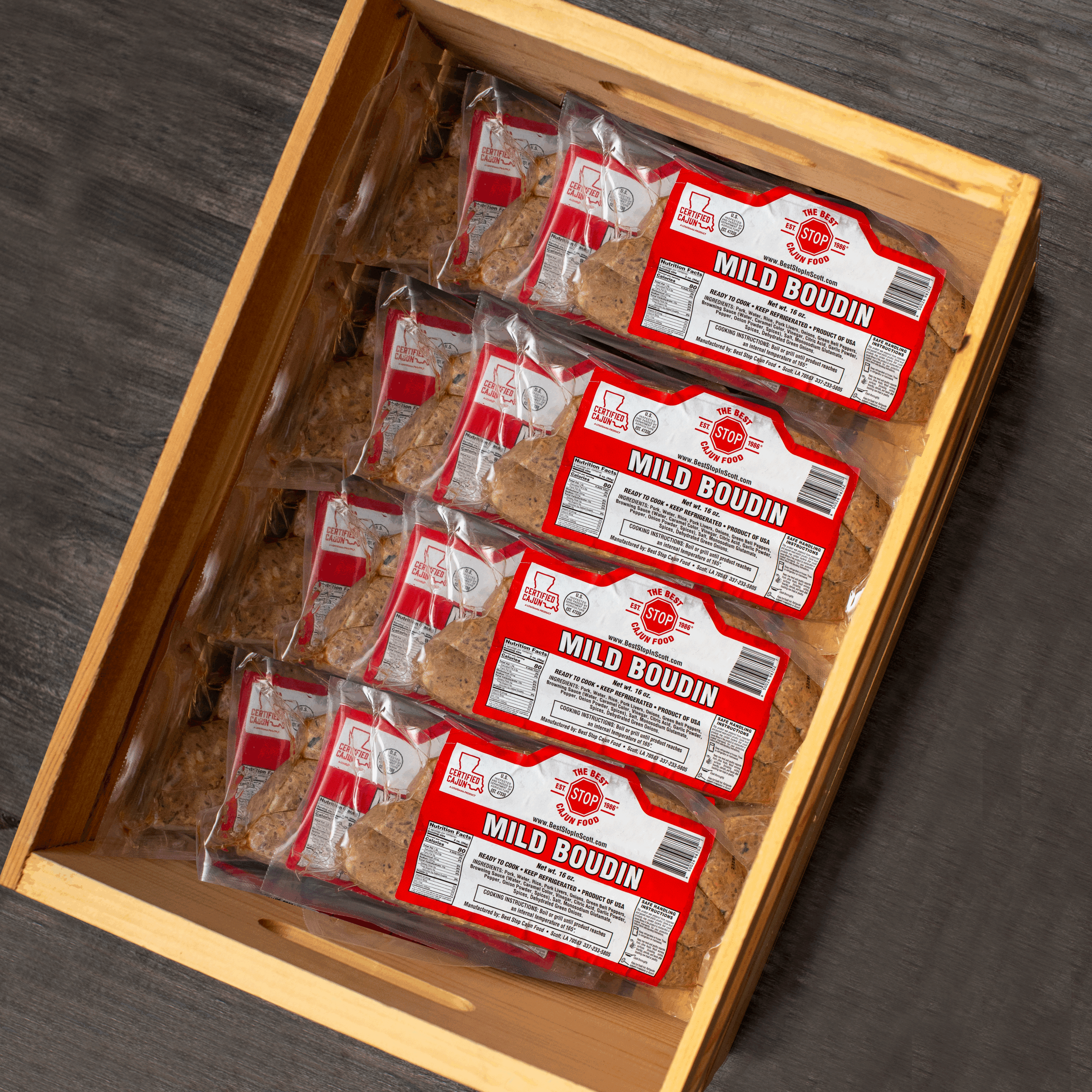 - Choice 1 – 12 packs Mild Boudin