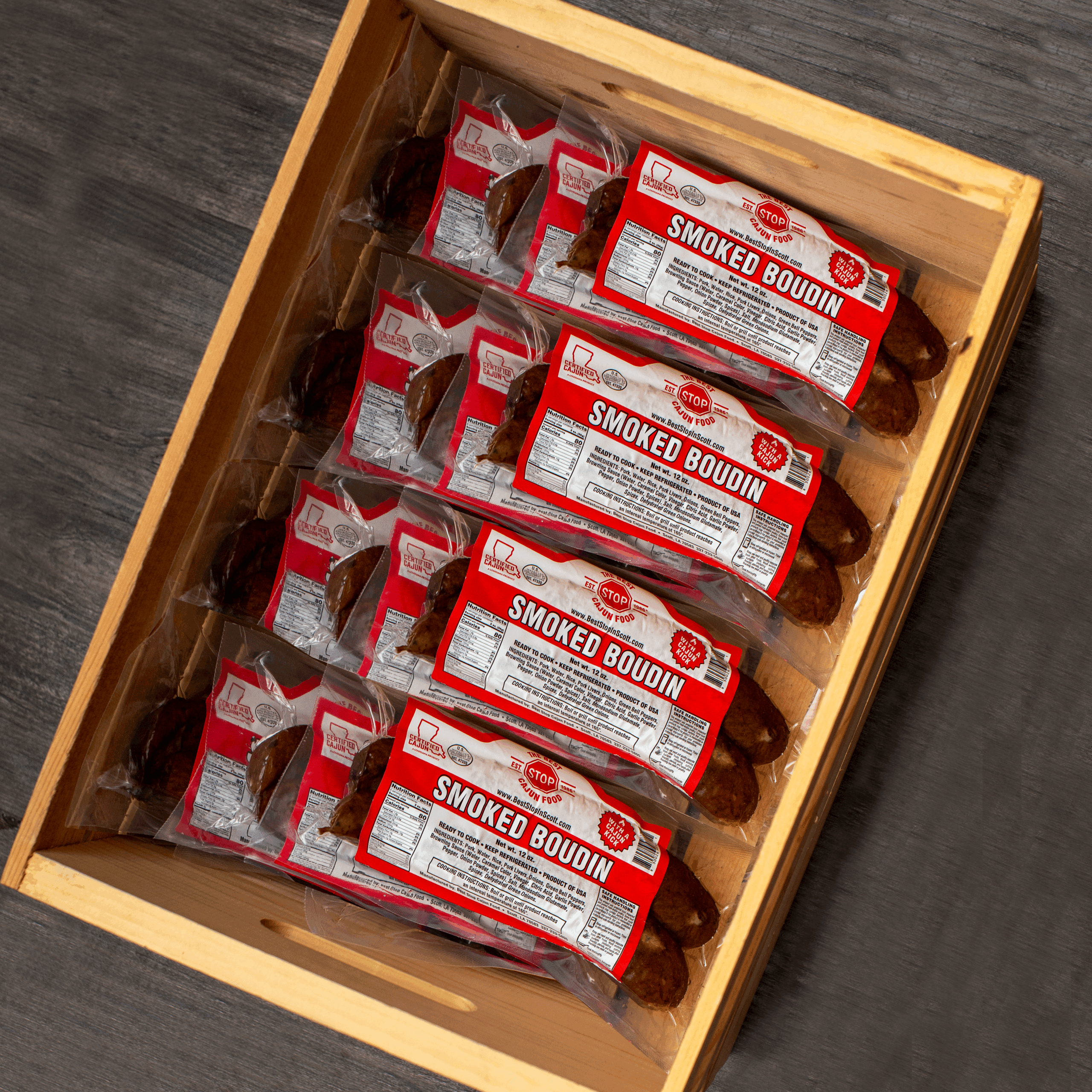 - Choice 3 – 12 packs Smoked Boudin